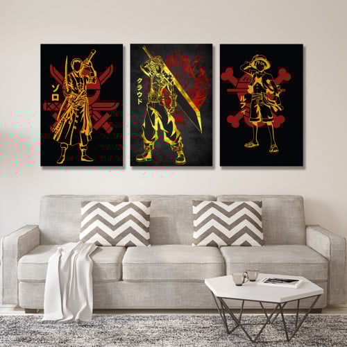 ثلاث لوحات قماشية بتصميم مسلسل One piece
