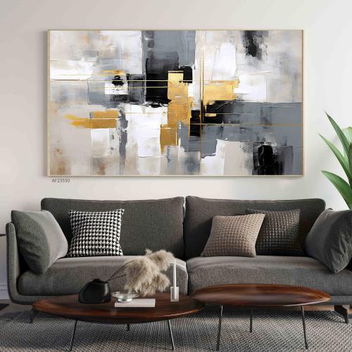 تضفي هذه اللوحة الفنية التجريدية لمسة من الأناقة والفخامة على أي مساحة داخلية. تتميز بتصميم عصري مع تداخل الألوان الرمادية والبيضاء مع لمسات ذهبية لامعة، مما يخلق تبايناً بصرياً جميلاً يجذب الأنظار ويعزز من جمالية الديكور. التفاصيل: الأبعاد: مثالية لتعليقها في غرفة المعيشة، المكتب، أو أي مساحة تحتاج إلى لمسة فنية راقية. الألوان: مزيج من الرمادي بدرجاته المختلفة، الأبيض، مع لمسات من اللون الذهبي الخامات: مطبوعة بجودة عالية على قماش كانفس النمط: تجريدي (مودرن)، يناسب الديكورات العصرية والحديثة. المميزات: تصميم جذاب: يجمع بين الأشكال الهندسية العشوائية والألوان المتباينة، مما يضفي عمقاً وثراءً على الديكور. الاستخدام: المساحات: مناسبة للاستخدام في المنازل، المكاتب، الفنادق، والمعارض الفنية. التنسيق: يمكن تعليقها بمفردها كقطعة محورية أو دمجها ضمن مجموعة من اللوحات لتكوين جدارية فنية متكاملة. تعليمات العناية: التنظيف: يمكن مسحها بقطعة قماش ناعمة وجافة للحفاظ على نظافتها وبريقها. التعليق: ينصح باستخدام مسامير أو خطافات مخصصة لتعليق اللوحات لضمان ثباتها وأمانها. تعتبر لوحة “تداخل الألوان الفاخرة” الخيار المثالي لإضافة لمسة من الأناقة والفخامة إلى ديكور منزلك أو مكتبك. بتصميمها العصري وألوانها الجذابة، ستعزز هذه اللوحة من جمالية أي مساحة توضع فيها، مما يجعلها استثمارًا فنيًا متميزًا. ملاحظة: لطلب مقاسات خاصه للتواصل مع خدمة العملاء اسفل الموقع