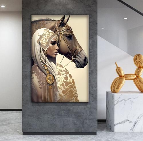 لوحة جدارية قماشية بتصميم الفن التجريدي بتصميم فتاة عربية مع برواز مجوف