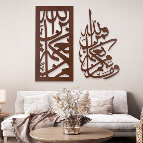 لوحة ديكور خشبية بنقشة ومابكم من نعمة فمن الله