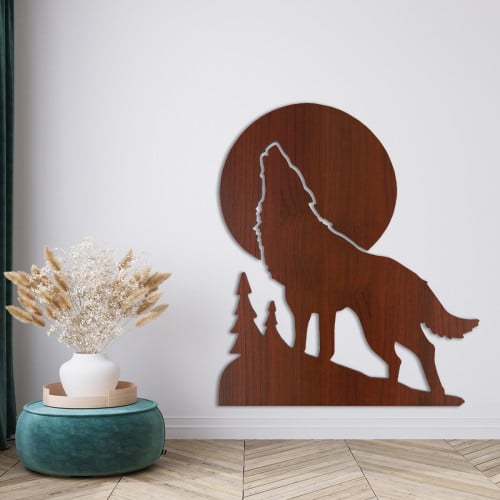 لوحة ديكور خشبية مودرن بنقشة ذئب