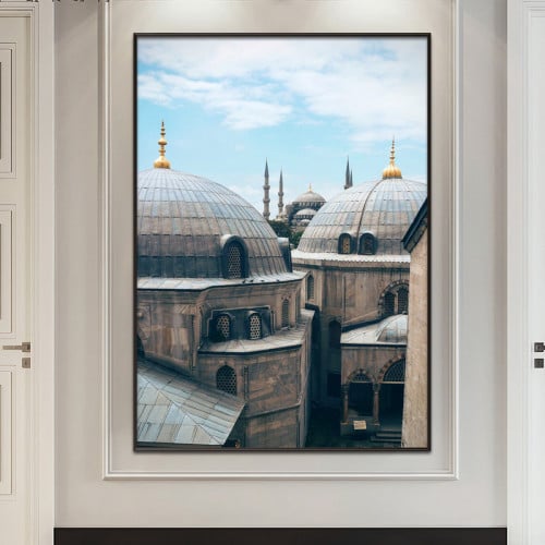 لوحة قماشية بتصميم رسمة اسلامية مع برواز مجوف