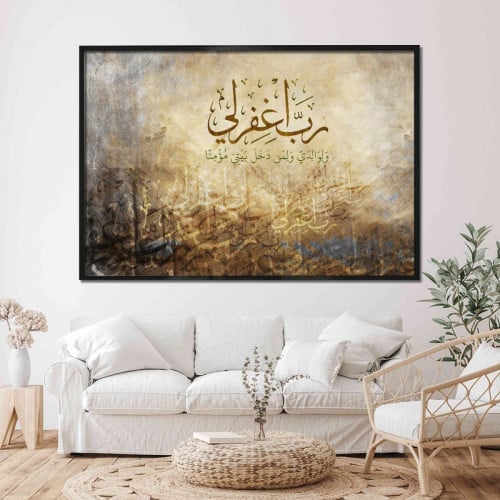 لوحة قماشية بتصميم رسمة اسلامية مع برواز مجوف