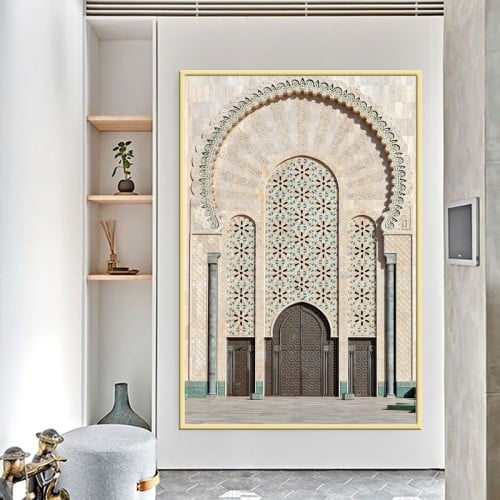 لوحة قماشية بتصميم مسجد مع برواز مجوف