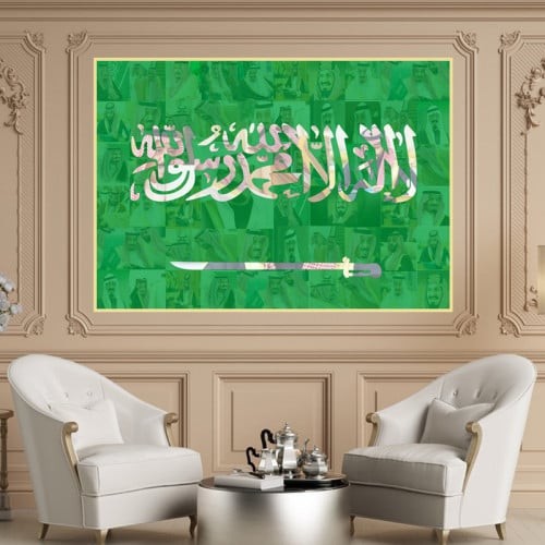 لوحة قماشية بتصميم ملوك السعودية مع برواز مجوف