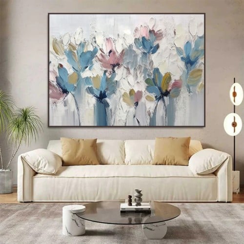 لوحة قماشية بتصميم ورود مع برواز مجوف