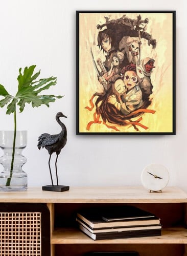 لوحة كانفاس على إطار خشبي بتصميم الشخصيات الرئيسية أنمي قاتل الشياطين