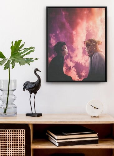 لوحة كانفاس على إطار خشبي بتصميم تانجيرو و رينجوكيو أنمي قاتل اشياطي