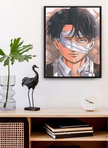 لوحة كانفاس على إطار خشبي بتصميم ليفاى أنمي هجوم العمالقة