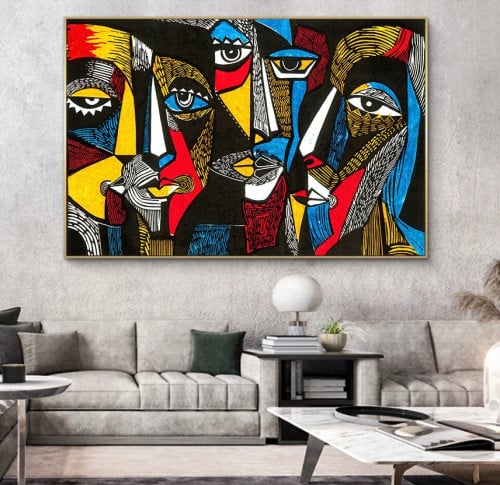 لوحة من الفن التجريدي الحديث، مزيج من ألوان مشرقة بطابع تصميم أوجه متعددة. لوحات صنعت بأحدث التقنيات العالية الدقة والوضوح قماش كانفس مشدود على إطار من خشب مع امكانية اضافة برواز خارجي من خيارات المنتج جاهزه لتُزين جدار منزلك و غرفتك، لتُضفي لمسة من الفن العالمي في منزلك. دقة وضوح عالية ومضمونة