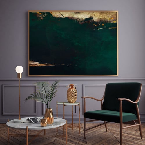لوحة من الفن التجريدي الحديث، مزيج من ألوان الأخضر الغامق وخطوط من ألوان الذهب. لوحات صنعت بأحدث التقنيات العالية الدقة والوضوح قماش كانفس مشدود على إطار من خشب مع امكانية اضافة برواز خارجي من خيارات المنتج جاهزه لتُزين جدار منزلك و غرفتك، لتُضفي لمسة من الفن العالمي في منزلك. دقة وضوح عالية ومضمونة