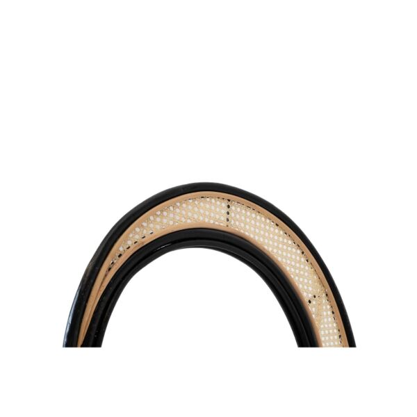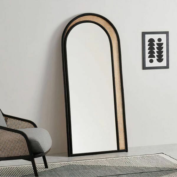 مرآة تم تصميم إيطارها بخشب الراتان بشكل معاصر و بألوان متناغمة