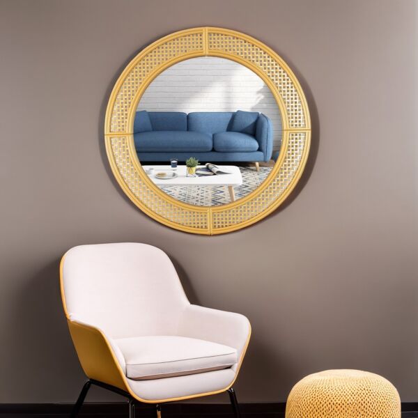 مرآة دائرية ذات تصميم أنيق وبسيط,يتم وضعها في أي مكان سيضيف لونًا لمنزلك ويظهر ذوقك. مرآة عالية الجودة، يمكن وضع هذه المرآة الجميلة في غرفة النوم ,غرفة المعيشة أو أي غرفة لتزيين منزلك.