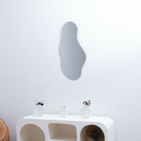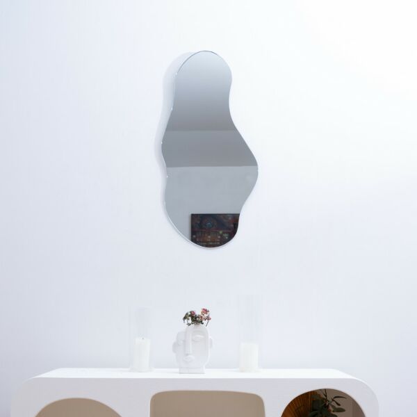 مرآة تتميز بتصميمها العضوي المستوحى من شكل البحيرة، تقدم لمسة من الجمال الطبيعي والأناقة العصرية لأي مساحة. تضفي هذه المرآة الفريدة انسيابية وشعورًا بالهدوء على الجدران، وتنسجم بشكل رائع مع الديكورات الحديثة والبسيطة. بفضل حجمها المثالي، تعتبر خيارًا رائعًا لتعليقها في المساحات الضيقة مثل المداخل أو الأركان، أو دمجها كقطعة فنية ضمن ترتيب مرآوي أكبر، لإضفاء بعد وعمق ينعكس من خلالها الضوء برقة وجاذبية.