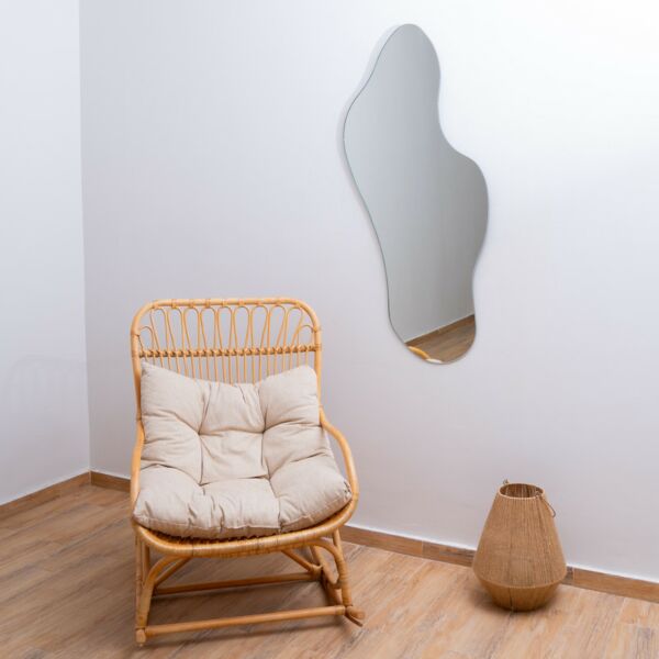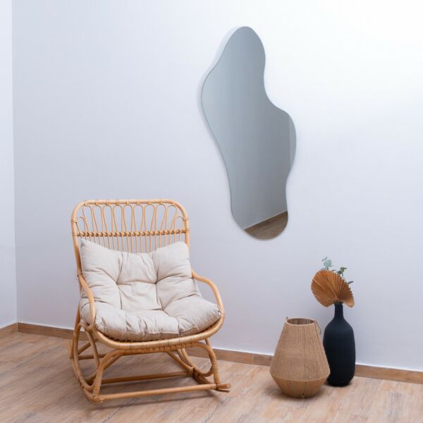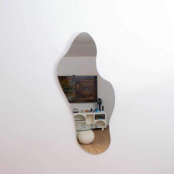بتصميمها الفريد والانسيابي تضفي لمسة من الأناقة العصرية على أي مساحة. بفضل شكلها الحر وغير التقليدي، تعمل هذه المرآة كقطعة ديكورية جذابة ومميزة تضفي إحساسًا بالاتساع والإضاءة. مناسبة لتزيين جدران غرف المعيشة أو المداخل أو حتى غرف النوم، لتضيف لمسة فنية متناغمة مع أي ديكور داخلي.الحجم المتوسط يجعلها مثالية للعديد من المساحات، حيث يمكن استخدامها بمفردها أو مع مجموعة من المرايا الأخرى لإبداع تصميم ديكوري فريد.
