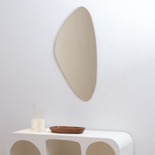 مرآة “فلير” بتصميمها المائل والانسيابي تضفي لمسة فنية عصرية لأي غرفة. بفضل شكلها الفريد وغير المتناظر، تبرز كقطعة جمالية تجمع بين الأناقة والبساطة. تعد هذه المرآة إضافة مثالية للمداخل أو غرف النوم أو حتى مساحات المعيشة، حيث تساهم في إضفاء عمق وإشراقة للمكان. مرآة “فلير” ليست مجرد أداة عملية، بل هي قطعة فنية تضيف شخصية وجاذبية لأي مساحة.