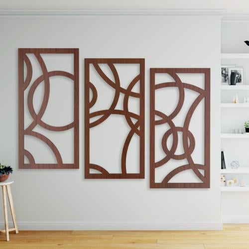 •أجود انواع الخشب سماكة 18 ملم • محفورة بتقنية قص الخشب على مكائن cnc ليزر و راوتر •نقشة عصرية مع إظهار أدق التفاصيل •خفيفة الوزن وسهلة التركيب على الجدار لوجود حاملات • تغليف بكرتونة سماكة 5 ملم يضمن الحماية • قشرة ميلامين على السطح باللون الخشبي الطبيعي • القياس: ثلاث قطع خشبية مقاس كل قطعه 40×20 سنتيمتر